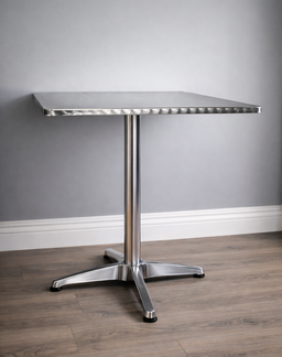 Complete your event seating with our professional aluminum square bistro table. Designed with a contemporary industrial aesthetic, this table features a durable stainless steel top with a textured, "engine-turned" finish that provides both scratch resistance and a modern flair. The sturdy central pedestal and four-point weighted base offer excellent stability for guest dining or drinks, while the compact square footprint makes it an ideal choice for cafes, rooftop bars, trade show booths, or intimate garden receptions.