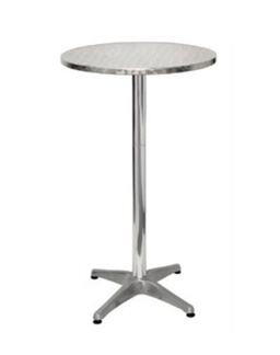 Create a stylish focal point for your networking hour or reception with our contemporary cocktail table rental. This high-top "bar height - 60cm" table features a sleek, circular stainless steel top with a polished finish that is both heat-resistant and easy to sanitize. Supported by a sturdy chrome pedestal and a stable four-point star base, it provides the perfect surface for guests to rest drinks and appetizers in a standing-room environment. Its minimalist, industrial design seamlessly integrates into modern weddings, rooftop parties, and professional corporate lounges.