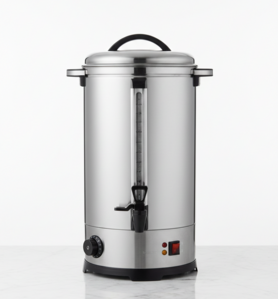Provide consistent hot beverage service with our 30-litre commercial electric water urn, an essential for large-scale catering and events. Constructed from high-quality stainless steel, this urn features a clear water-level indicator and a precise temperature control dial for optimal heating. The heat-resistant handles and secure lid ensure safe operation, while the non-drip tap provides a clean, professional pour every time. Its sleek, polished finish makes it a perfect fit for buffets, conferences, or staff rooms.