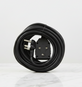 Ensure reliable power for your events with our 10m heavy-duty electrical extension cord, designed for professional use. This high-quality black cable is neatly coiled for easy transport and storage, featuring a durable 3-pin plug and a matching robust socket. The thick insulation provides excellent protection and longevity, making it an essential tool for catering setups, lighting, or any mobile equipment needs. Its sleek, minimalist profile allows it to blend discreetly into any professional environment.