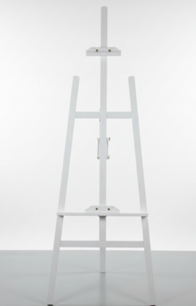 Present your event signage with elegance using our professional white wooden display easel. This classic A-frame floor easel features a clean white finish and an adjustable support ledge, making it a versatile choice for a variety of formal occasions.