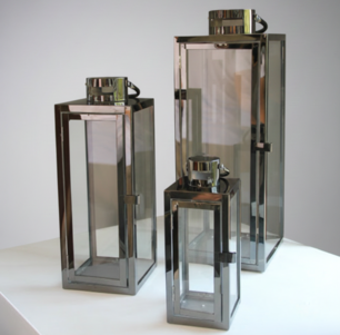 Enhance your ambiance with these sleek, industrial-style candle lanterns. Crafted with polished chrome or black frames and clear glass panels, this trio features a modern minimalist aesthetic that complements any interior or outdoor setting. The varying heights create a dynamic visual display, while the sturdy top handles allow for easy transport.