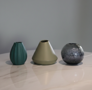 Elevate your decor with this curated collection of miniature vases. This versatile set includes a textured teal vessel, a matte sage conical piece, and a speckled charcoal sphere. Whether displayed individually as subtle shelf accents or grouped for a modern tabletop centerpiece, their diverse silhouettes and organic tones bring an artistic, tactile feel to any room. Ideal for both minimalist and eclectic styling.