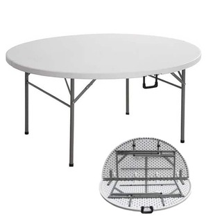 Facilitate effortless group dining and conversation with our professional round folding banquet table. This versatile table features a high-impact, blow-molded white plastic top that is both stain-resistant and easy to clean, making it an ideal choice for wedding receptions, gala dinners, and corporate conferences. The sturdy powder-coated steel legs provide a stable foundation for full place settings and centerpieces, while the innovative fold-in-half design with an integrated carrying handle ensures easy transport and compact storage. Whether you are hosting an indoor banquet or an outdoor celebration, this table offers a reliable and polished surface for any event layout.