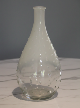 Create a whimsical and elegant floral display with our frosted glass bubble vase. This unique piece features a teardrop silhouette with a frosted finish at the top that gradually transitions into clear glass at the base. Adorned with delicate, raised glass "bubbles" across the exterior, it adds wonderful texture to any tablescape. This charming vase is an ideal choice for displaying single stems or small bouquets at wedding receptions, garden parties, or intimate showers.
