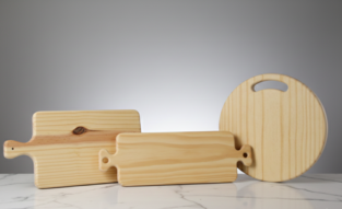 Elevate your culinary presentation with this versatile set of handcrafted pine boards. Featuring a variety of silhouettes—including a classic handled paddle, a dual-grip rectangular board, and a sleek circular server—this collection meets every hosting need. Each piece showcases the beautiful, light-toned natural grain of durable pine wood. Perfect for use as individual chopping blocks or grouped together for an expansive, rustic charcuterie display. Ask about our diverse selection to find the perfect pieces for your event.