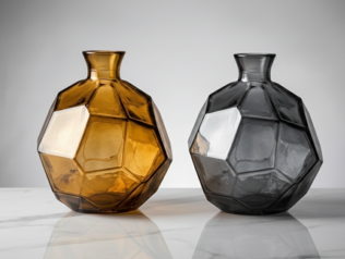 Elevate your space with these striking geometric glass vases. Featuring a bold, faceted design in warm amber and smoky gray, these vessels create a beautiful play of light and shadow.