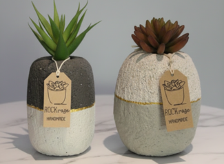 Infuse your event with natural charm using these handcrafted stone planters. Featuring a unique two-tone design with a subtle gold accent line, these textured vessels perfectly house lush succulents. Their organic, pebble-like shape and earthy charcoal and sand tones make them ideal for centrepieces. These artisan pieces add a warm, grounded feel to any modern or rustic interior.