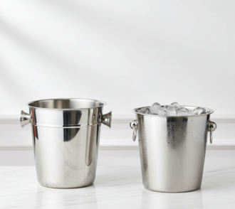 Ensure your beverage service remains chilled and sophisticated with our premium stainless steel ice bucket collection. These essential bar equipment rentals feature a high-polish metallic finish that adds a sleek, modern touch to any bar setup or guest table.