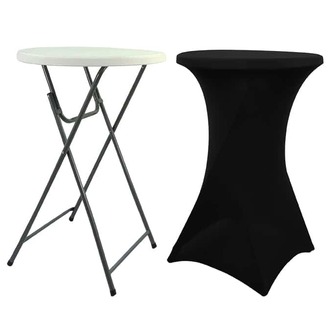 Create a functional and inviting social space with our folding cocktail table rental set. This collection features a high-top 80cm banquet table designed for maximum efficiency and style. The set includes a lightweight, portable folding table with a durable white plastic top and sturdy cross-legged steel frame, perfect for rapid setup and breakdown. To elevate the presentation, we provide a sleek black or white stretch-fabric cover that contours perfectly to the table’s silhouette, hiding the legs and creating a modern, polished look for networking events, cocktail hours, or wedding receptions.
