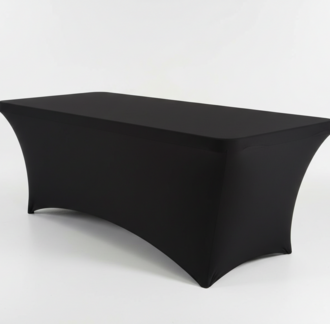Elevate your event presentation with our rectangular stretch tablecloth, designed for a sleek and wrinkle-free fit. Crafted from high-quality spandex-blend fabric, this cover contours perfectly to your table, creating clean lines and a modern silhouette. The durable reinforced leg pockets ensure the cloth stays securely in place, even in high-traffic or outdoor settings. Its sophisticated black finish is perfect for trade shows, weddings, and corporate banquets.