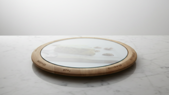 Elevate your next gathering with this sophisticated round serving tray. Encircled by a sleek, natural wood border, the reflective glass surface provides a stunning, modern backdrop for artisanal cheeses, appetisers, or desserts. Its low-profile design and clean lines make it a chic centerpiece for any table or dining setting. A perfect blend of contemporary style and functional elegance for the modern host.