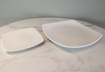 Modernise your table setting with our white ceramic square plate set, designed with a contemporary flared silhouette. This set includes a spacious dinner plate and a matching side plate, both featuring gently curved edges that blend modern geometry with classic elegance. Crafted with a crisp white finish, these durable plates provide a sophisticated backdrop for any meal. Ideal for weddings, banquets, or upscale dining, they offer a professional and polished aesthetic.