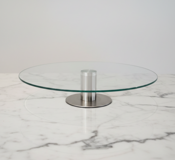 Present your confections with contemporary flair using our modern minimalist glass cake stand, featuring a sleek, industrial-inspired design. This stand is crafted with a circular tempered glass top supported by a robust, brushed stainless steel pillar and a wide, stable base. Its transparent surface creates a sophisticated floating effect, ensuring your culinary creations remain the focus. Ideal for modern weddings or minimalist-themed parties, it offers a clean, professional look.