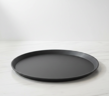 Ensure secure and efficient service with our 35cm non-slip waiter's tray, a staple for any busy hospitality environment. This professional round tray features a high-friction surface designed to prevent glassware and plates from sliding, even when wet. Its durable, lightweight construction and raised rim provide excellent control and balance for staff during transport. The sleek black finish offers a clean, modern look that suits everything from casual bistros to high-end catering events.