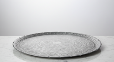 Add a touch of global elegance to your event with our ornate silver Moroccan tray rental. This stunning piece features a low-profile, circular design intricately embossed with traditional floral and geometric patterns. The scalloped edges and polished metallic finish catch the light beautifully, making it an exquisite choice for serving welcome drinks, traditional tea, or displaying specialised appetisers. Whether for a bohemian-themed wedding, a cultural celebration, or a high-end corporate lounge, this tray serves as a captivating centerpiece that blends historical charm with professional event styling.